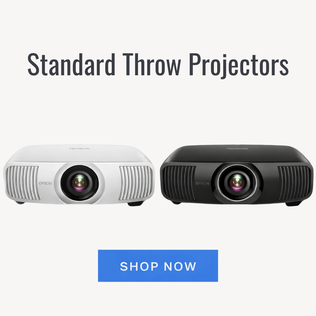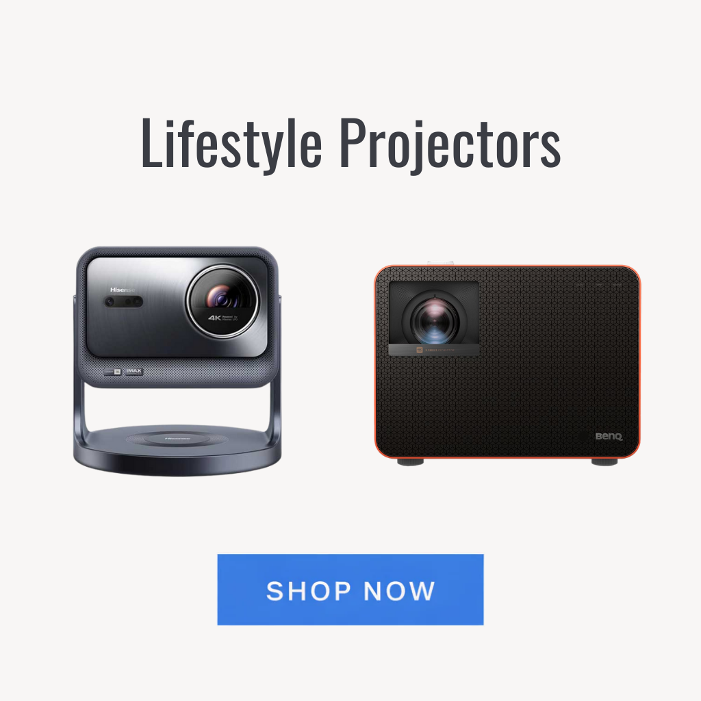 Our catalog includes a carefully curated selection of short throw, ultra short throw, standard throw, lifestyle, golf simulator, and optional lens projectors, as well as premium projection screens engineered for a wide range of lighting conditions and room sizes.